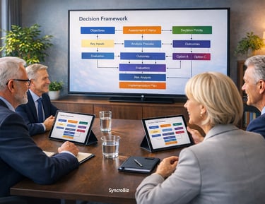 SyncroBiz provides independent advisory support to leaders making high-impact technology and transformation decisions, particularly where:
